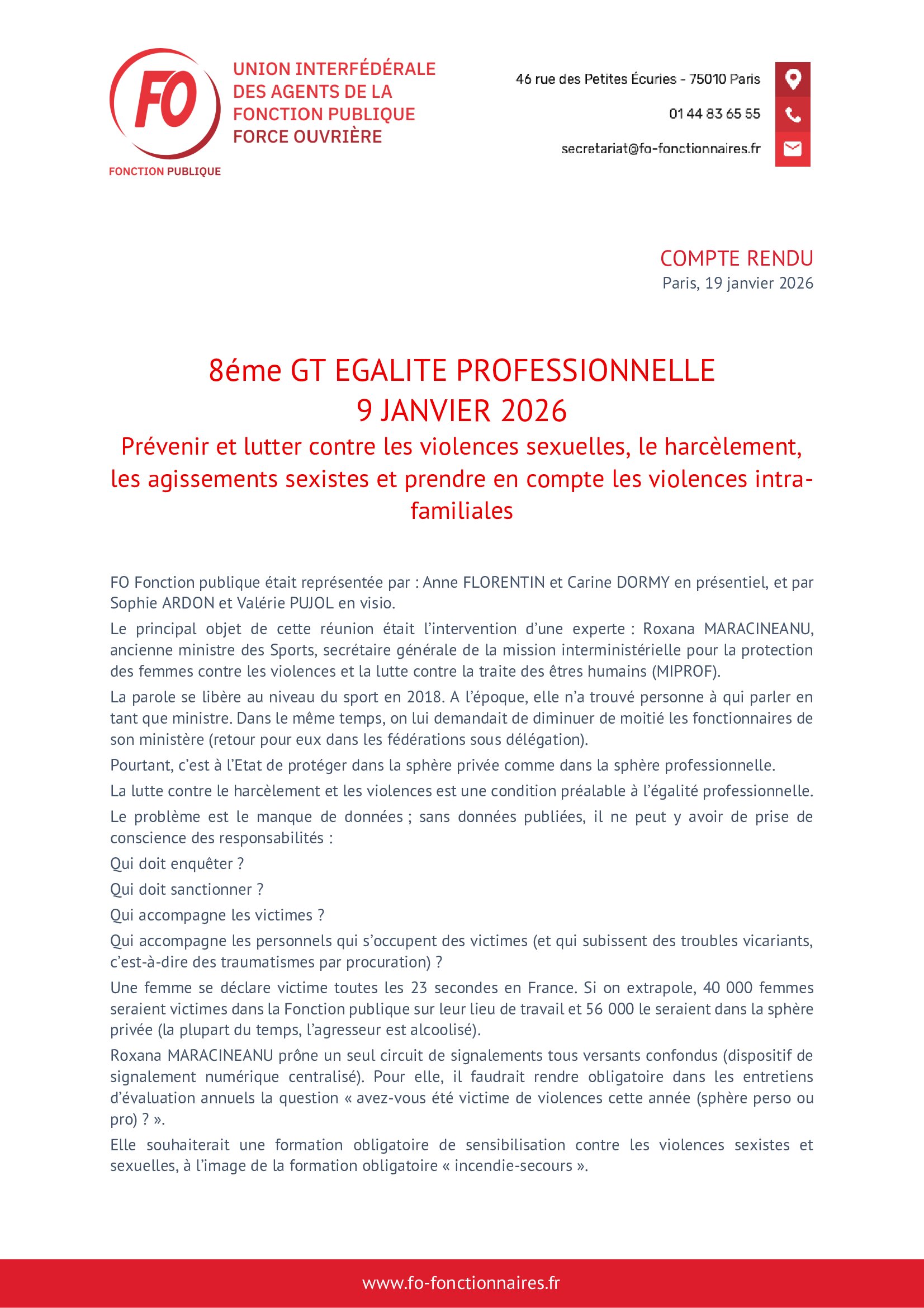 Accueil documents Compte rendu du 8ème groupe de travail « Égalité professionnelle »
