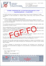 Accueil documents Compte rendu du CSFPE du 12 juillet 2022 ainsi que la déclaration liminaire et les documents présentés en séance