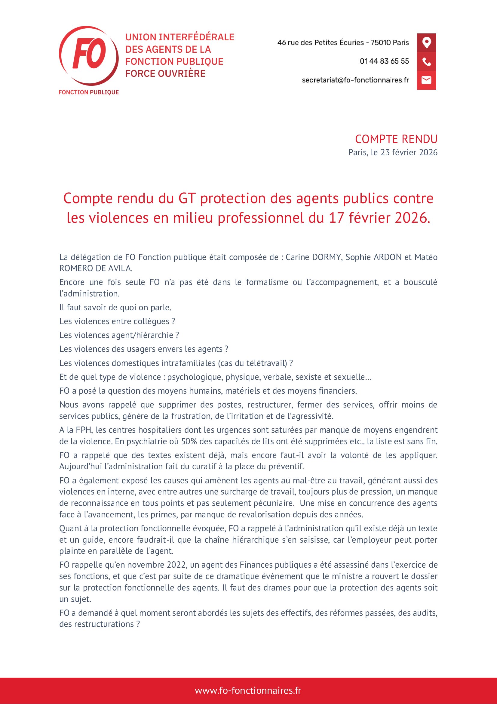 Accueil A la une Compte rendu du GT Protection contre les violences du 17 février 2026