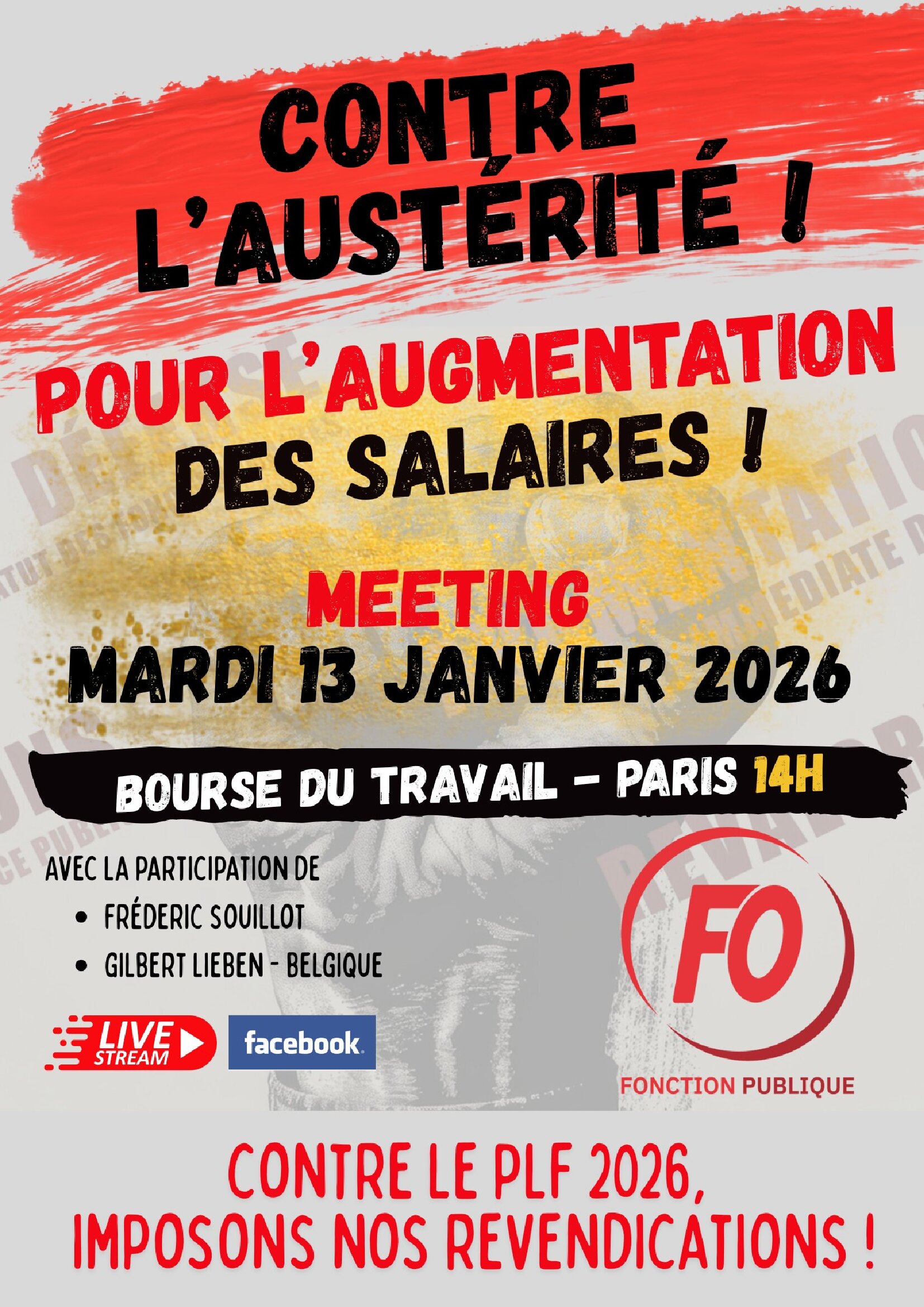 Ce meeting s’inscrit pleinement dans la mobilisation contre le PLF 2026, pour défendre le pouvoir d’achat, les salaires et les revendications des agentes et agents des trois versants de la Fonction publique.