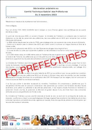 Accueil Comité technique spécial Déclaration préalable au CTSP du 3 novembre 2022 et tract sur l’ordre du jour de ce comité spécial des préfectures