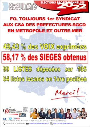 Accueil documents FO toujours 1er syndicat aux CSA des préfectures-SGCD en métropole et Outre-mer