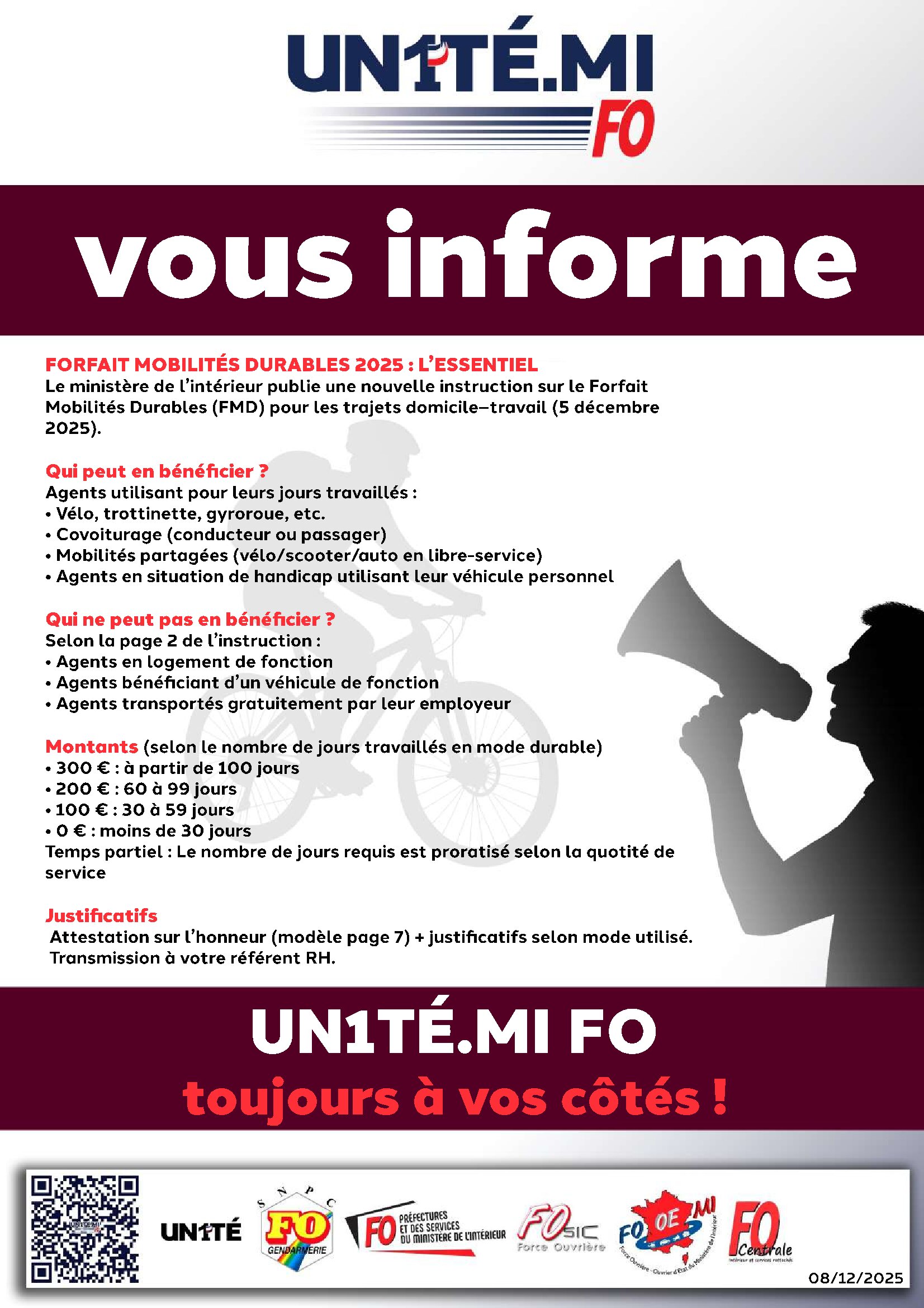 Accueil A la une Forfait Mobilités Durables (FMD) accompagné de l’instruction MI du 5 décembre 2025