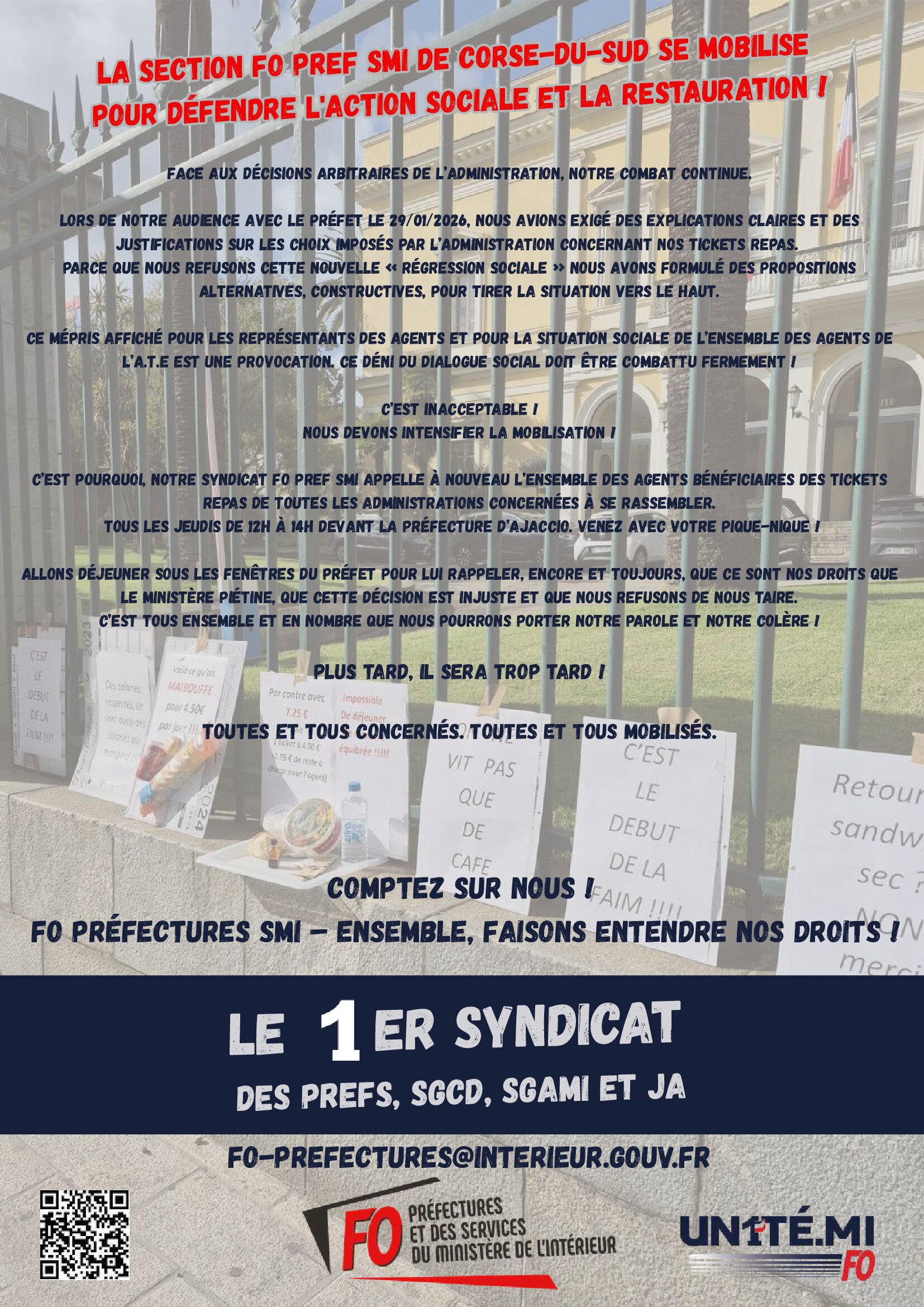 Accueil A la une La section FO PREF SMI de Corse-du-Sud se mobilise pour défendre l’action sociale et la restauration !