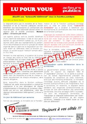 Pdf Lu Pour Vous Acteurs Publics Bientot Une Indemnite Teletravail Dans La Fonction Publique
