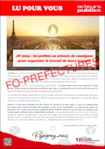 Accueil documents LU POUR VOUS suite à un article d’Acteurs Publics paru ce matin intitulé : JO 2024 : les préfets en attente de consignes pour organiser le travail de leurs troupes