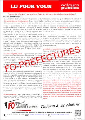 AccueildocumentsLu pour vous suite à un article d’article d’Acteurs Publics intitulé: Indemnité inflation – qui touchera l’aide de 100 euros dans la fonction publique
