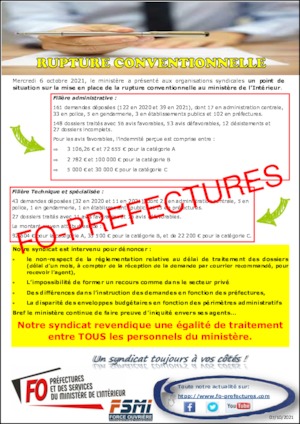 Accueil documents Rupture conventionnelle à la suite de la réunion du 6 octobre 2021 entre le ministère et les organisations syndicales
