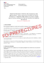 AccueilCOVID-19version actualisée du « questions/réponses » de la DGAFP relatif à la mise en œuvre de la circulaire du Premier ministre du 1er septembre 2020 relative à la prise en compte dans la fonction publique de l’Etat de l’évolution de l’épidémie de Covid-19 (ajo